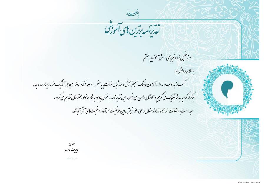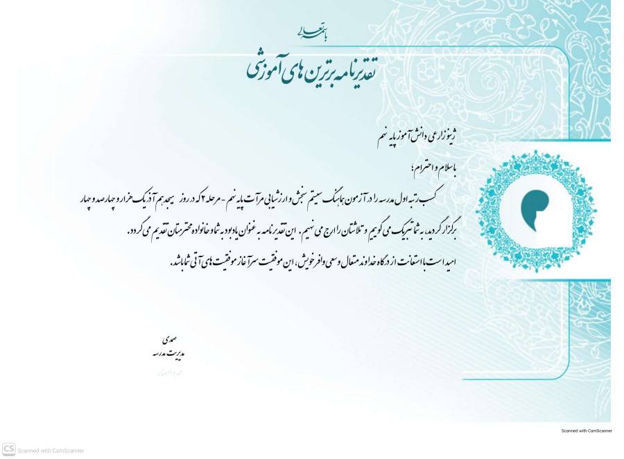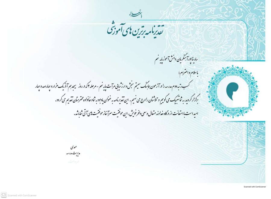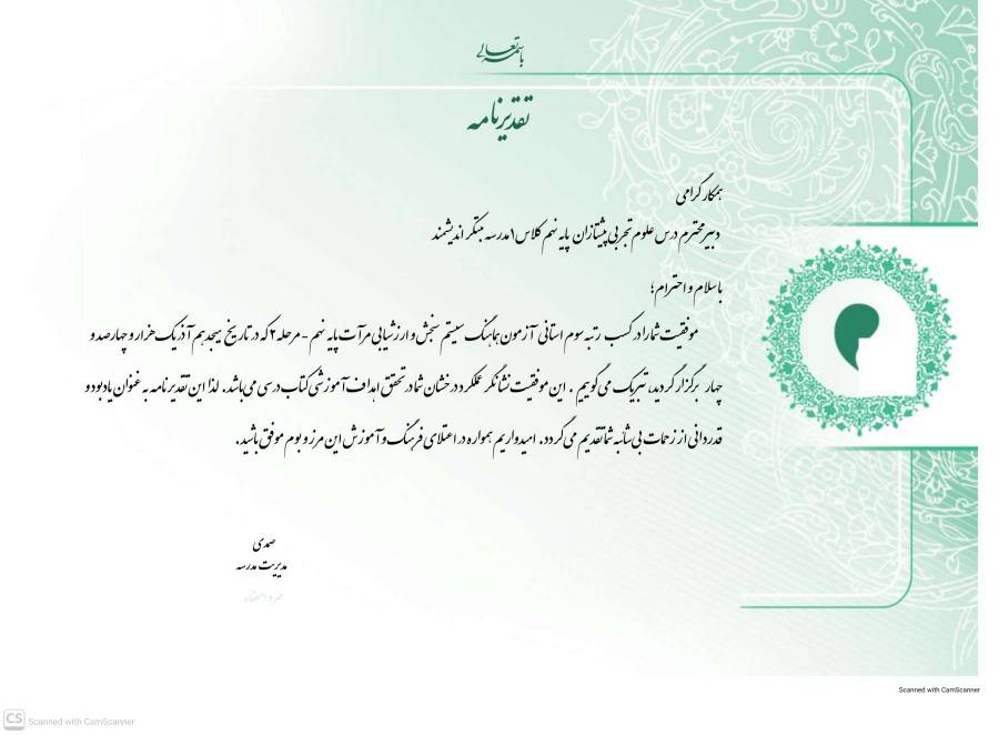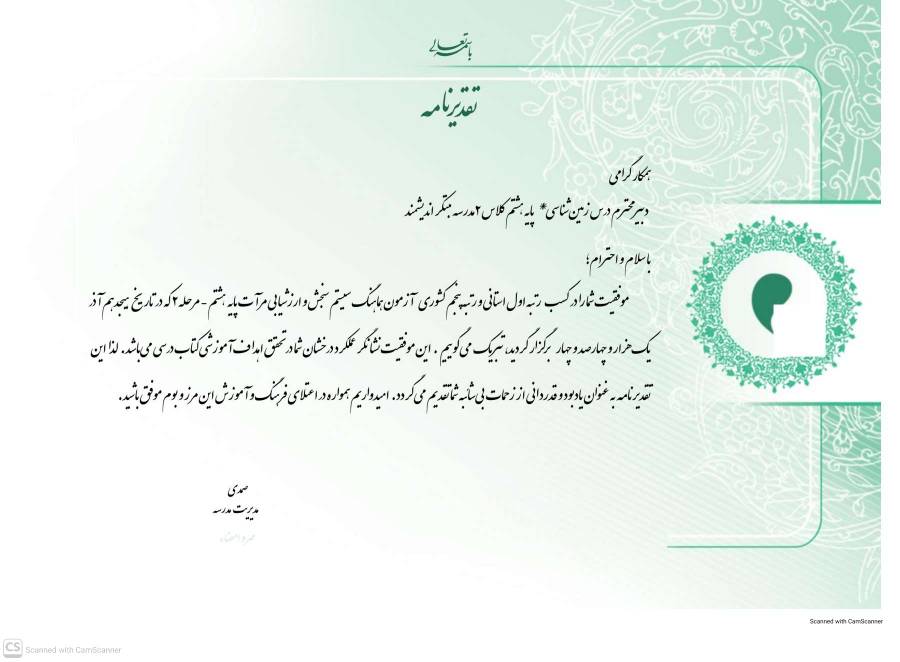 و رتبه سوم استانی و ششم کشوری در درس زمین شناسی پایه نهم
