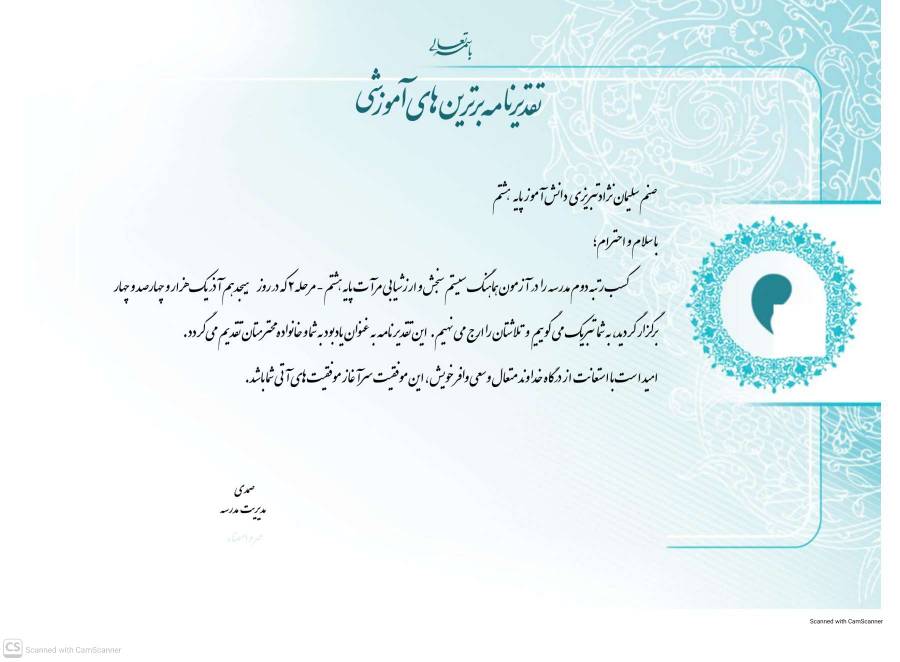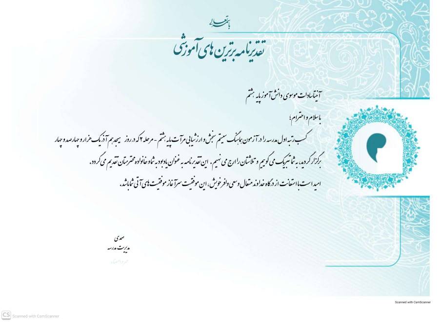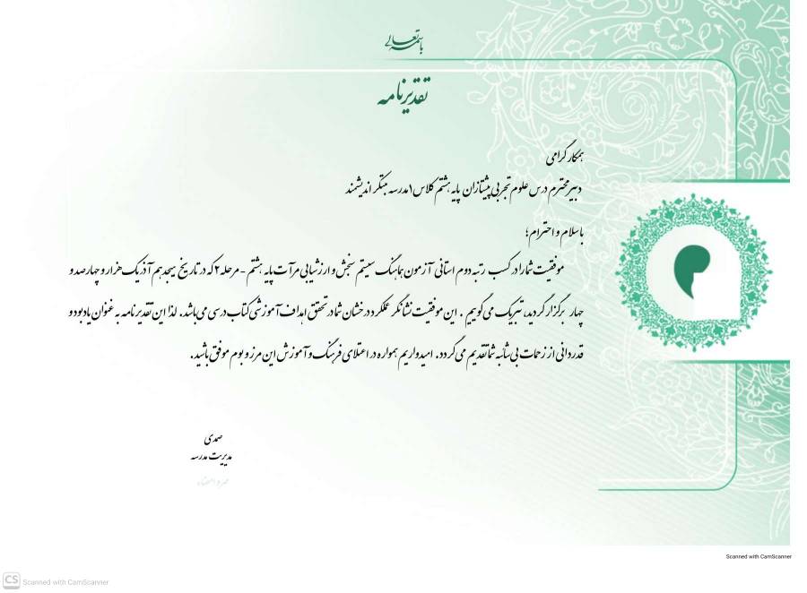 تقدیرنامه یادبودی ارزشمند از تلاش‌های بی‌وقفه و مستمر است.